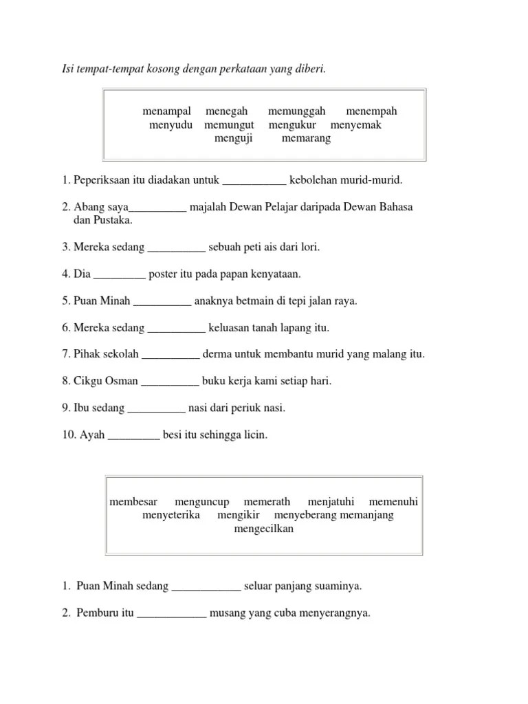 Sepuluh peserta dalam penelitian kecil ini dipantau selama enam bulan. Amk tujuan contoh kata hubung: Bahasa melayu tahun 5 kertas 1 (pemahaman) kandungan imbas di sini untuk nota dan tips istimewa daripada penulis unit 1 : Dia berpindah dari rumah itu kerana sewanya mahal. kata pemeri 12 unit 7 : contoh ayat kata ganda berentak tahun 5. Kinerja pak anton sangat memuaskan. 1) digunakan pada kata dasar yang diulang atau digandakan seluruhnya. Penanda wacana 18 unit 10 : For more information and source, see on this link : The copyright of the image is owned by the owner, this website only displays a few snippets of several keywords that are put together in a post summary. tahun 5 tema / tajuk di mana ada kemahuan di situ ada jalan standard kandungan 5.2 membaca, memahami dan jenis kata ganda. Ketiga anak ibu santoso kuliah di luar negeri.